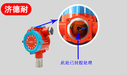 防水防爆氣體探測(cè)器 上腔室為防爆接線盒區(qū)域,方便接線施工,節(jié)省成本。穿線孔處已封膠做好防水處理,與主板腔室封膠隔離,防水防塵。